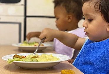 Zwischen 11–12 Uhr gehen die Kinder zum Mittagessen. In der Krippe gehen die kleinen Kinder schlafen, während die großen Kinder sich in der Wachgruppenzeit ausruhen und spielen können. Im Elementarbereich finden zur Mittagszeit Traumreisen, Entspannung oder Yoga statt.